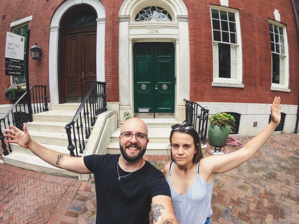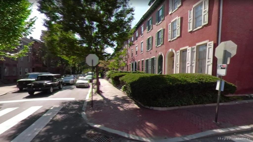 Sur notre route en direction du City Hall et du Philly Team Store alors que notre fille dort dans la voiture, nous faisons un arrêt rapide en double file devant la maison du Docteur Malcolm Crowe (Bruce Willis), La porte est très reconnaissable encore plus avec celle de gauche juste a côté. La marque des volets est toujours présente.