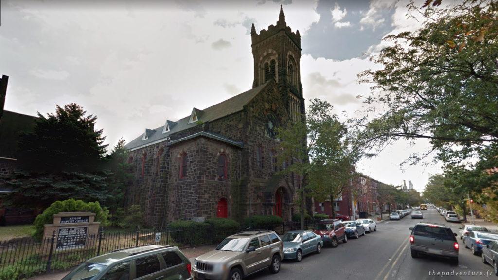 On se retrouve maintenant à deux pas du Ben Franklin Bridge dans le quartier de la veille ville pour découvrir l’église St. Augustine Church où Cole se réfugie. Ici aussi, la porte a bien changé.
