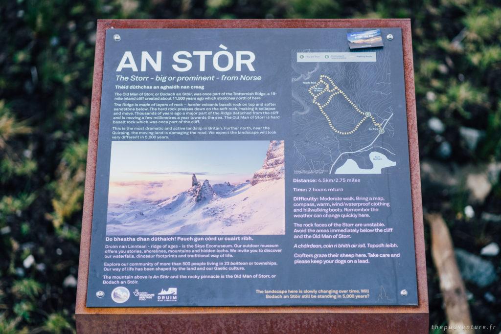 Pour si rendre, rien de plus simple: bien indiqué sur google map, le Gps vous conduira directement au pied du Old Man. Un Parking tout neuf vous y attendra, et payant naturellement, mais rien d’étonnant sur un site touristique aussi important et qui plus est, en Écosse ! En effet, lors de notre passage des travaux étaient en cours pour réaliser un parking digne de ce nom (et une boutique bien sûr !), pouvant accueillir le flot de touristes qui en saison viennent découvrir par paquets le Old man. D’ailleurs plusieurs autres sites étaient en train de se voir offrir des parking, pour éviter,je suppose, que les touristes ne se garent en masse sur les bas côtés et ne provoquent des désagréments en tout genre. Étonnant, d’ailleurs,que cela n’ai pas été fait plus tôt !