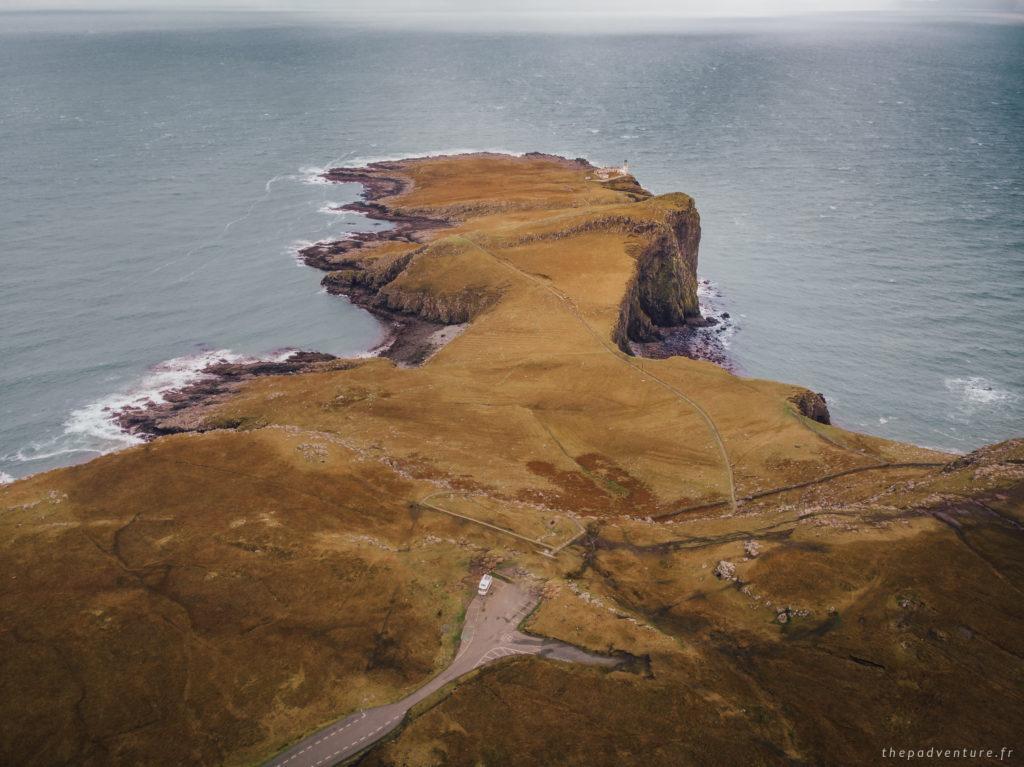 Il se situe en réalité un peu avant l’arrivée au Neist Point, on passe devant en en voiture en s’y rendant.