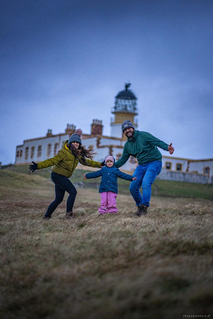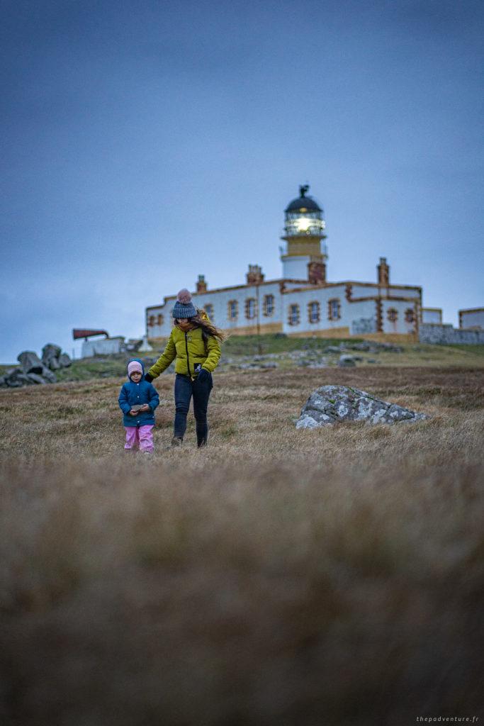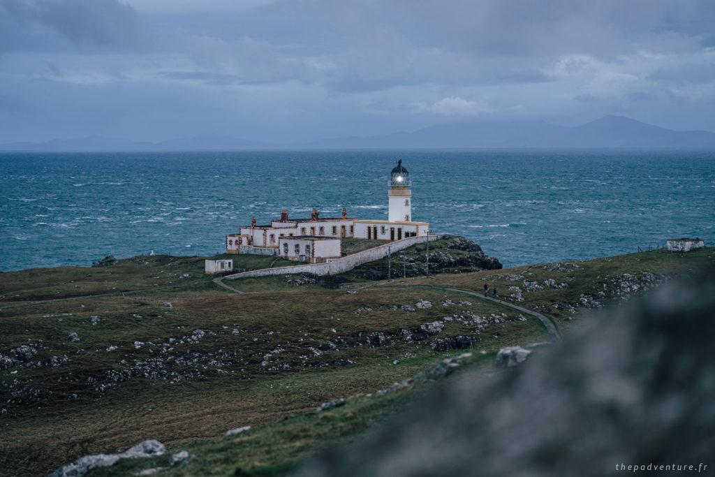 Une fois arrivés à destination, depuis le phare, une vue imprenable sur les îles Hébrides écossaises s’offrira à vous si le ciel est dégagé. Le phare en lui même est joli mais ressemble à de nombreux phares que l’on a pu croiser au nord de l’Écosse. Mais la bâtisse qui l’entoure est assez vétuste et gâche un peu le plaisir en donnant une touche un peu délabrée au site. Heureusement des travaux de réhabilitation sont en cours. Si vous continuez après le phare, ( en faisant bien attention ) vous aurez une vue magnifique depuis les falaises vertigineuses qui se jettent dans les eaux déchainés de l’océan.