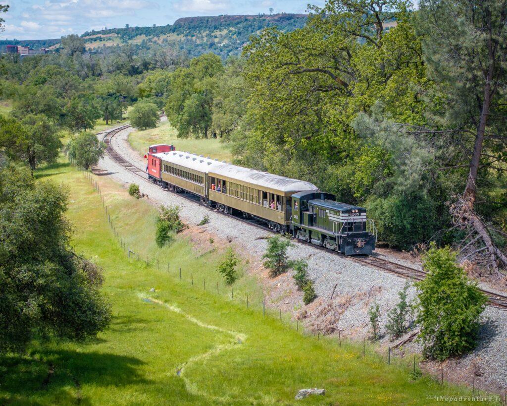 Embarquez pour un voyage inoubliable à bord d’une locomotive diesel d’époque et traversez la campagne californienne. Votre excursion en train aller-retour de 6 miles (environ 10 km) dure 45 minutes et vous emmène au-delà du château d’eau de « Petticoat Junction », passant de l’arrière-cour de Jamestown aux collines escarpées de la région de la Mother Lode.