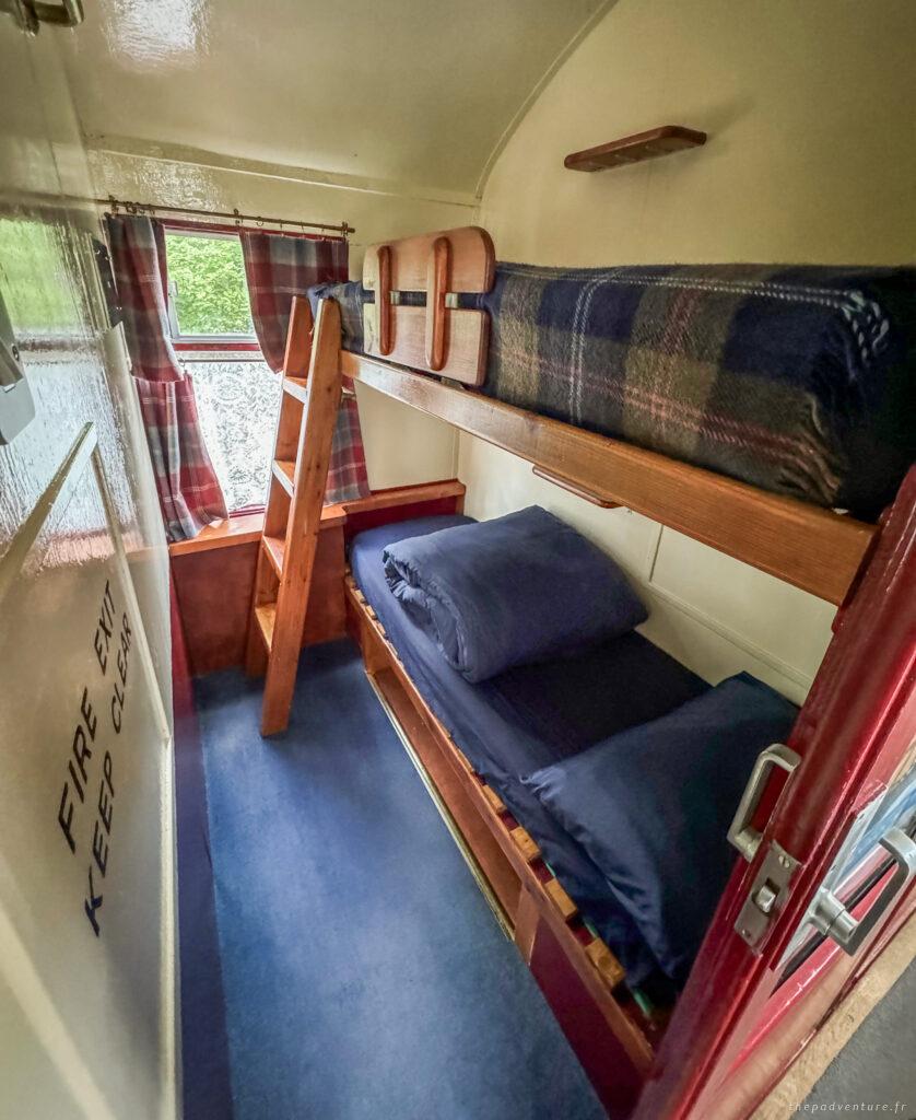 Le Glenfinnan Sleeping Car, c’est un wagon historique qui a été transformé en un petit hostel chaleureux, tout en conservant son charme d’époque. Tu y trouveras tout ce dont tu as besoin :